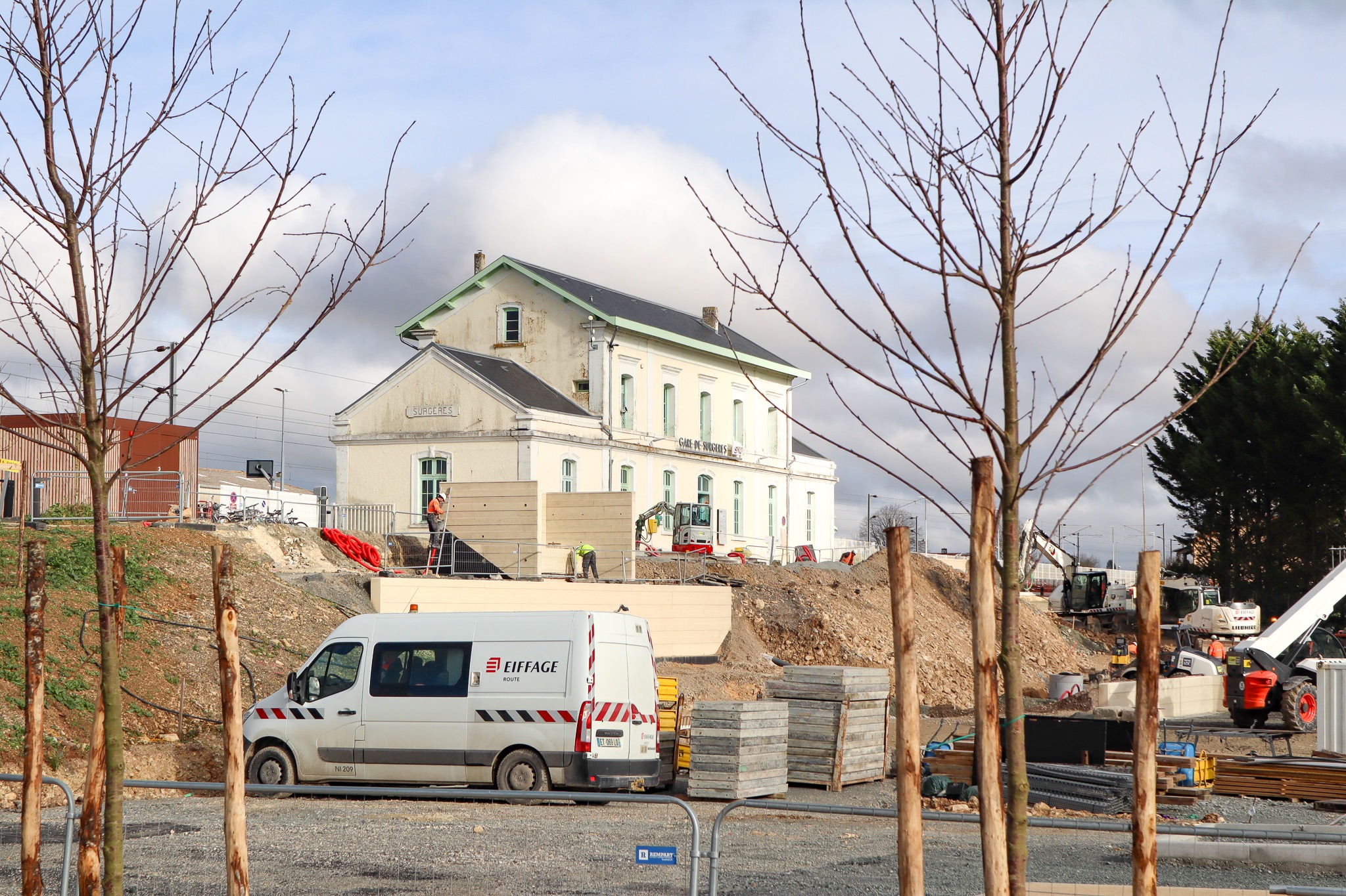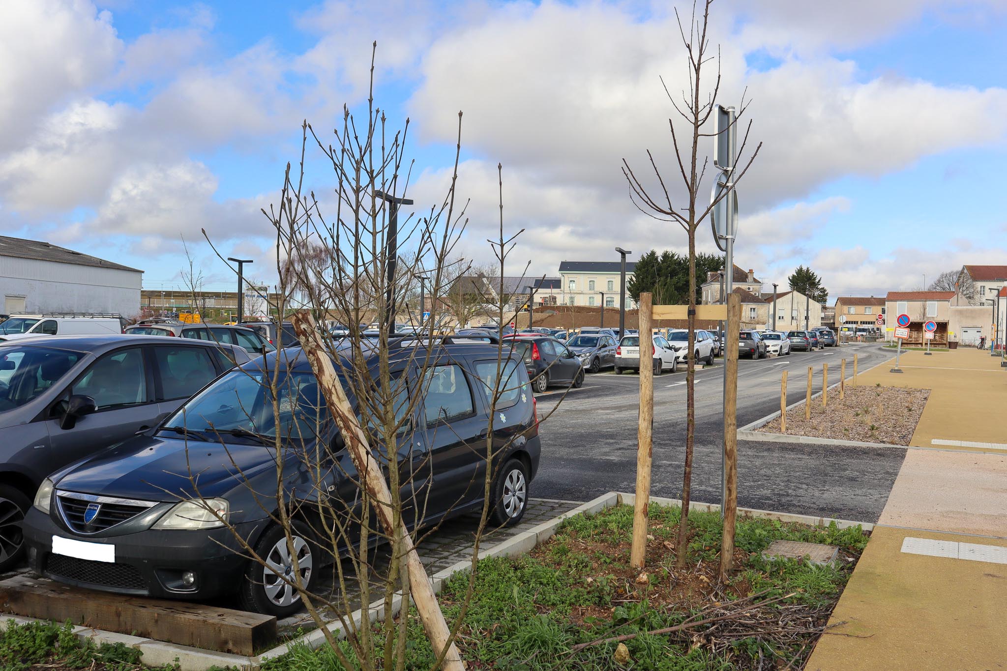 Alors que les parkings du Pôle d’Échanges Multimodal (P.E.M) sont achevés depuis quelques semaines, un autre grand chantier se poursuit avec la végétalisation des espaces autour du site. De nombreuses plantations d’arbres, d’arbustes, de vastes massifs et de grands espaces engazonnés sont réalisés depuis début décembre avec l’objectif de créer une composition paysagère évoquant l’identité de l’Aunis.