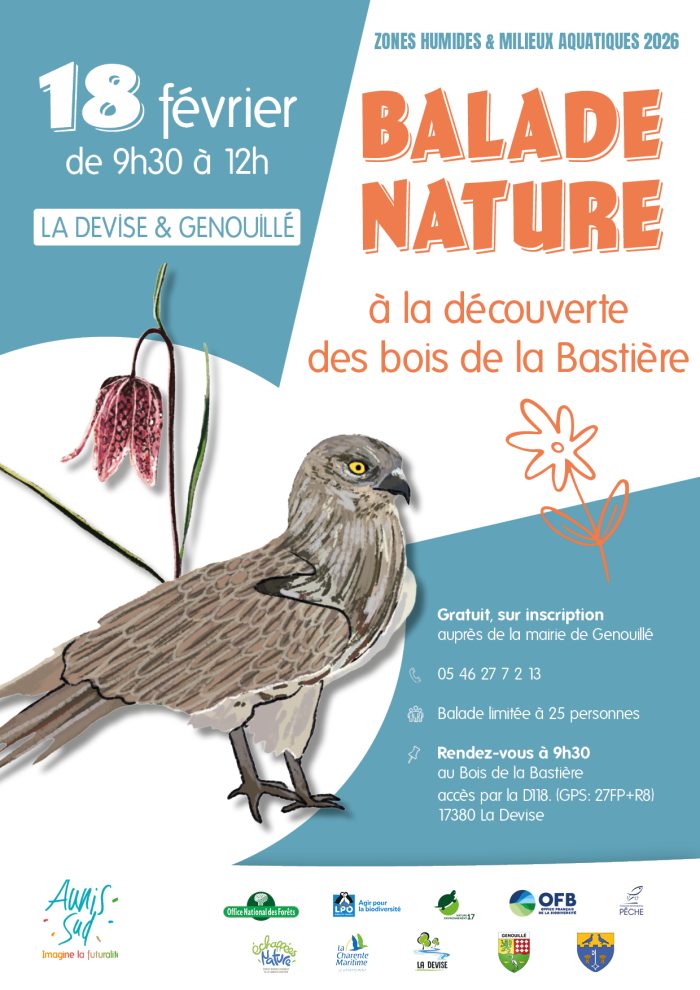 - Gratuit, sur inscription auprès de la mairie de Genouillé – 05 46 27 72 13
