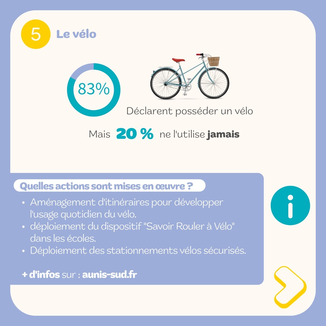 Si 83 % des répondants possèdent un vélo, beaucoup restent encore au garage. Pour transformer ce potentiel en mode de déplacement quotidien, la Communauté de Communes met en place un certain nombre d’actions :