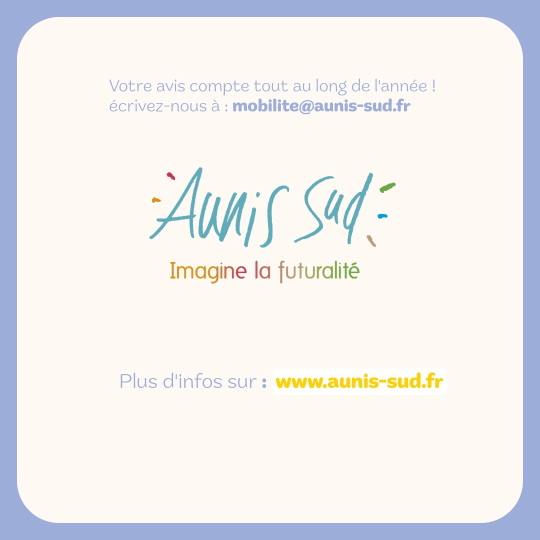 Une question ? Une idée ? L’équipe mobilité est à votre écoute toute l’année pour échanger sur vos problématiques de déplacement : mobilite@aunis-sud.fr.