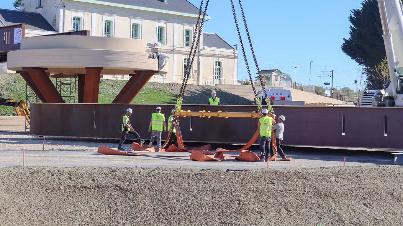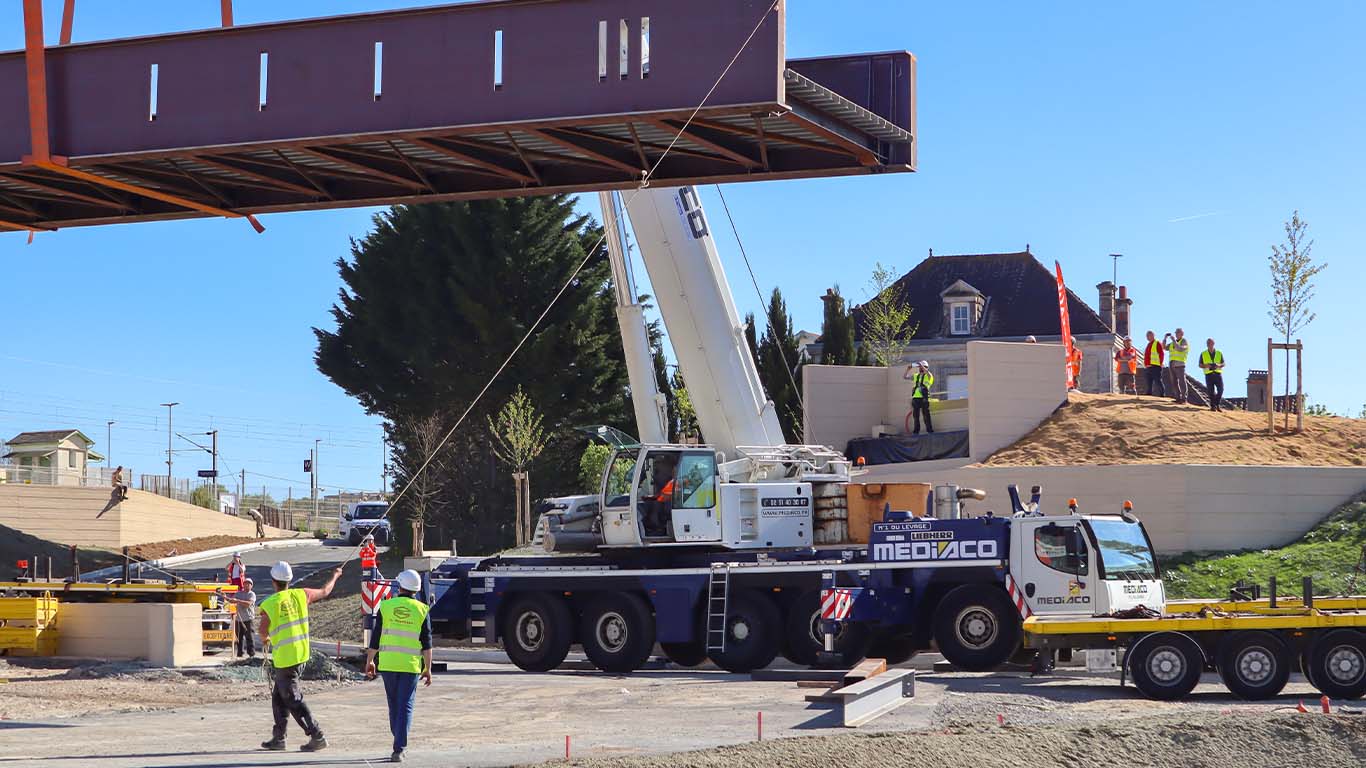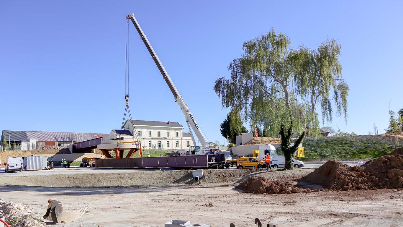 Jeudi 09 avril 2026, le chantier du Pôle d’Échanges Multimodal (PEM) a franchi une étape importante avec l’installation de la passerelle piétonne.