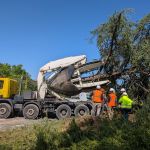 Avant l’arrachage, les branches mortes ont été retirées et le sol a été préparé pour faciliter la reprise. Une fois extrait de sa fosse d’origine, le cèdre a été acheminé avec précaution vers sa nouvelle implantation. Une fosse de réception avait été préparée en amont, et l’arbre y a été replanté avec soin. Un arrosage conséquent a immédiatement été réalisé afin de limiter le stress hydrique. Pour garantir les meilleures conditions de reprise, l’arbre sera désormais arrosé chaque semaine à hauteur de 250 litres minimum. Un haubanage (système de câbles permettant de stabiliser l’arbre) sera installé pour le protéger du vent et faciliter le développement de ses racines. Une fertilisation spécifique est également prévue dans les mois à venir pour renforcer sa vitalité.